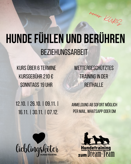 Hunde Fühlen & Berühren – Beziehungsarbeit auf Augenhöhe 6-wöchiger Gruppenkurs für achtsame Mensch-Hund-Verbindungen - 1 Platz frei